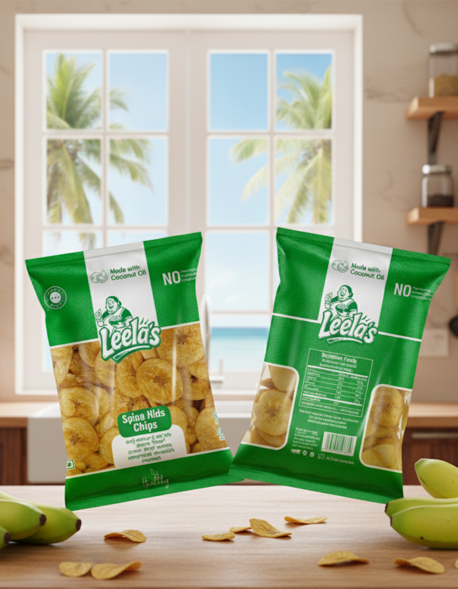 Ready-to-eat crispy, thin-sliced salty Nendran Banana Chips (Upperi) made of 100% coconut oil. No Added Colours or Preservatives.